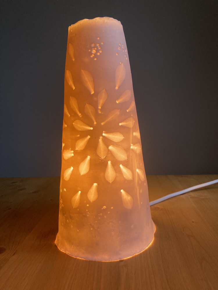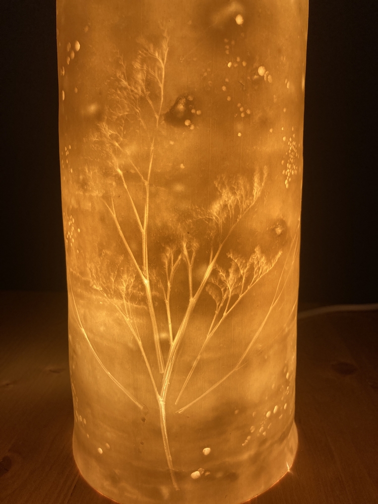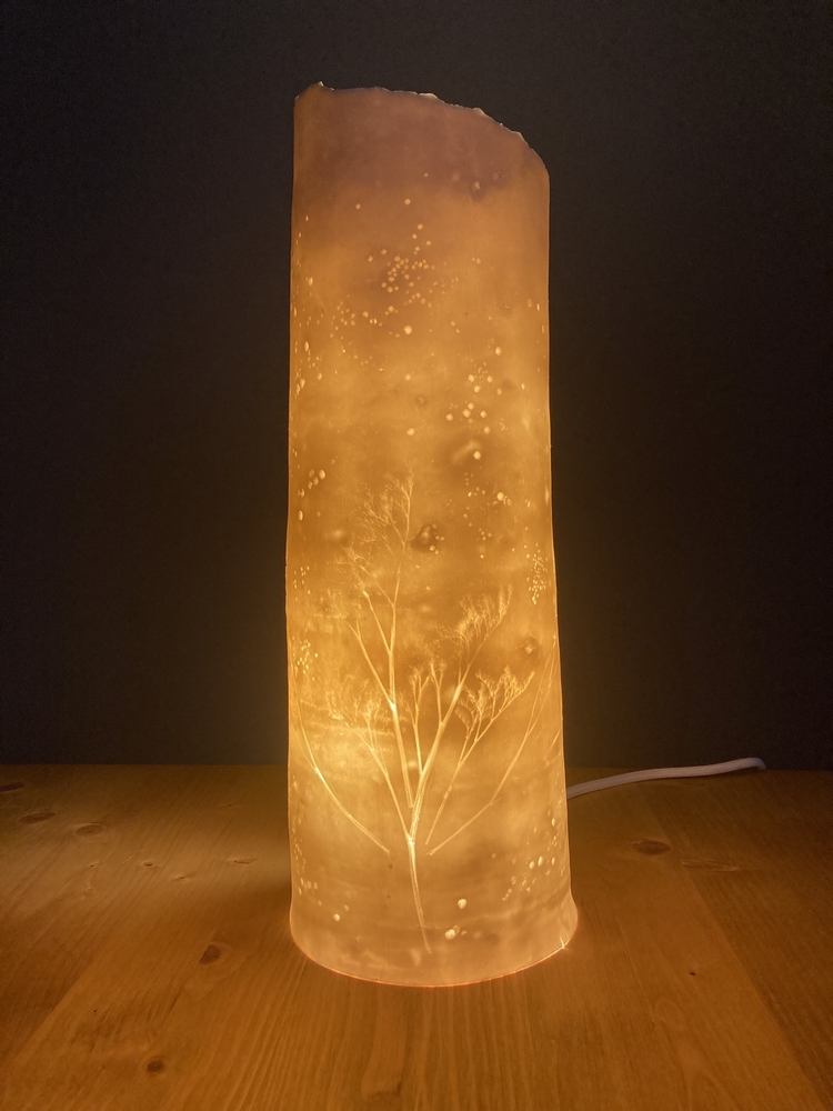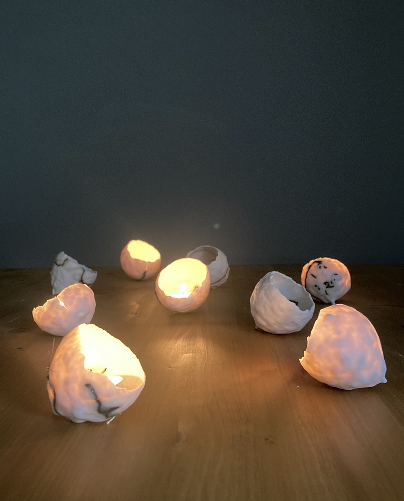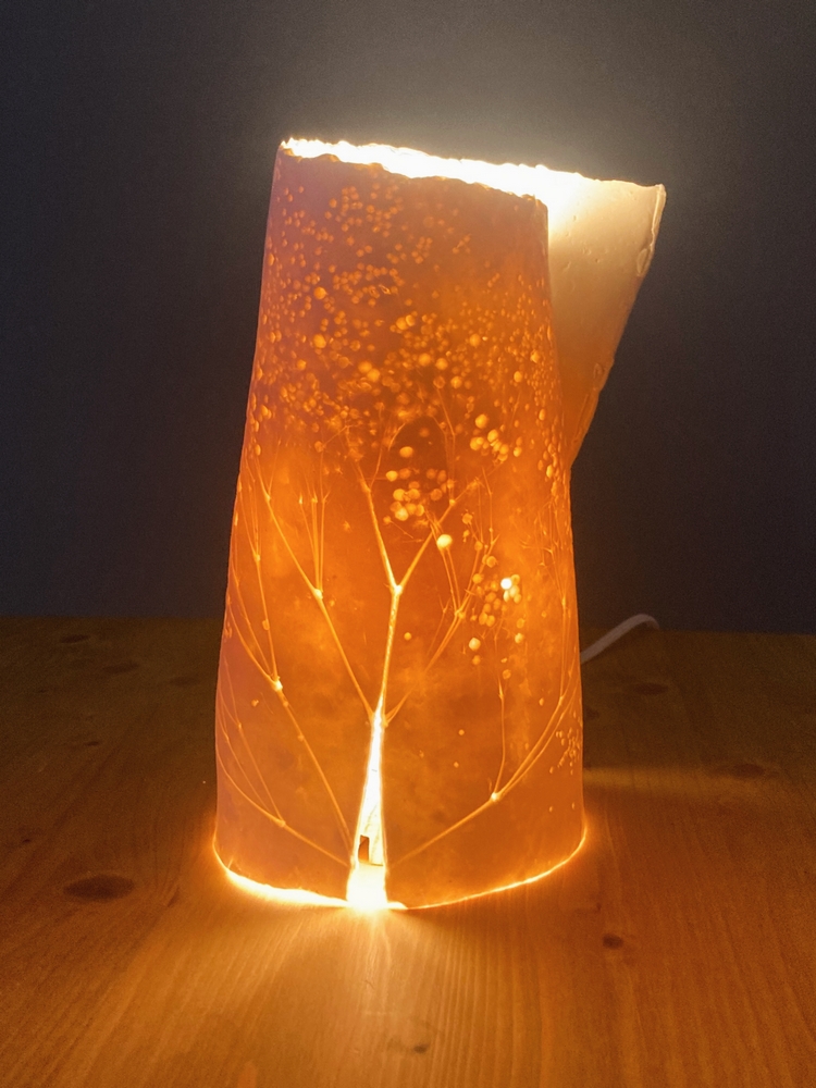 Je travaille particulièrement la porcelaine, que j’appelle l’hypersensible de la céramique : son grain ultra fin agit comme un révélateur ultra-sensible des contours et des formes des éléments vivant ou non-vivant que je récolte dans mes balades, mes itinérances ou tout simplement le jardin d’à côté. Lumière et transparence font le reste : c’est finalement une poésie visuelle qui apparaît et vient nous toucher, comme un souvenir lumineux de ce que nous ne voyons pas toujours et auquel nous sommes pourtant intimement liés et dépendants. La matière est le médiateur entre nos territoires extérieurs et intérieurs.