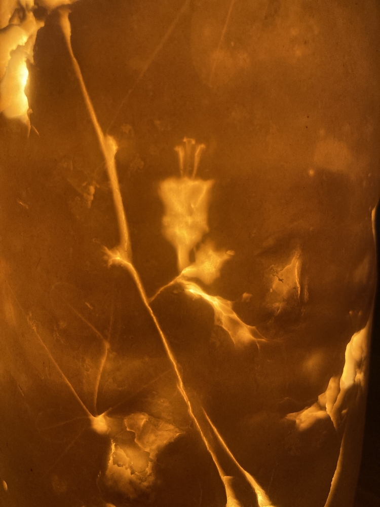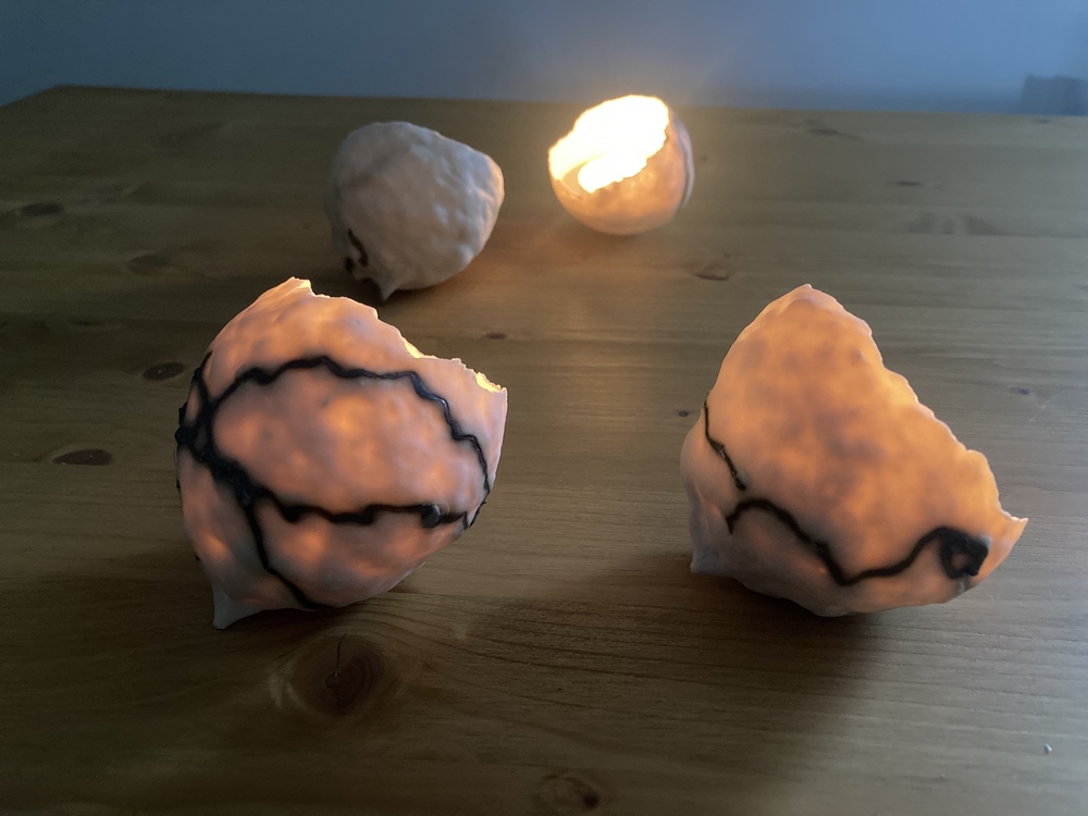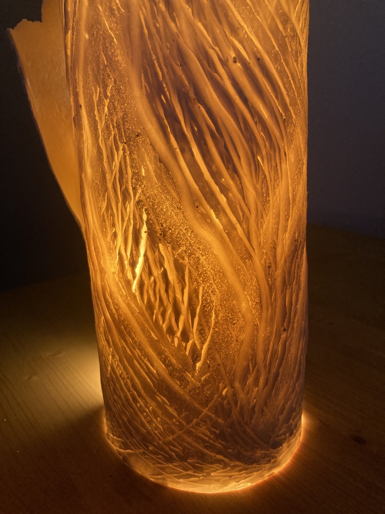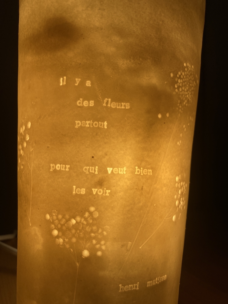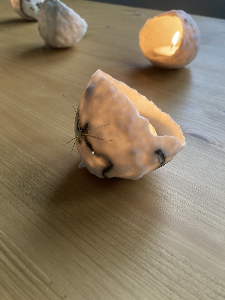 Je travaille particulièrement la porcelaine, que j’appelle l’hypersensible de la céramique : son grain ultra fin agit comme un révélateur ultra-sensible des contours et des formes des éléments vivant ou non-vivant que je récolte dans mes balades, mes itinérances ou tout simplement le jardin d’à côté. Lumière et transparence font le reste : c’est finalement une poésie visuelle qui apparaît et vient nous toucher, comme un souvenir lumineux de ce que nous ne voyons pas toujours et auquel nous sommes pourtant intimement liés et dépendants. La matière est le médiateur entre nos territoires extérieurs et intérieurs.